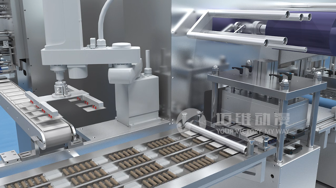 本期邁維動(dòng)漫將為您演示制藥機械全工藝流程,動(dòng)畫(huà)演示會(huì )將復雜的生產(chǎn)工藝、專(zhuān)業(yè)自動(dòng)化生產(chǎn)線(xiàn)流程變得生動(dòng)直觀(guān)。本片展現工藝流程分別為:理瓶、塞干燥劑、數粒、旋蓋、封口、貼標、裝盒、三維裹包、開(kāi)裝箱封箱、打包、機器人碼垛、完成入庫等步驟,所有環(huán)節都為您依次呈現。