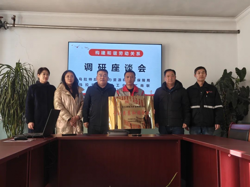 12月25日,烏拉特后旗人社局黨委書記、局長敖日格樂,總工會副主席潘瑩,工商聯(lián)副主席馬述敏等一行人到訪,在公司二樓會議室開展座談會并進(jìn)行“勞動關(guān)系和諧企業(yè)”授牌儀式,公司黨支部副書記、經(jīng)理史小亮,職能部室人員參加座談會。