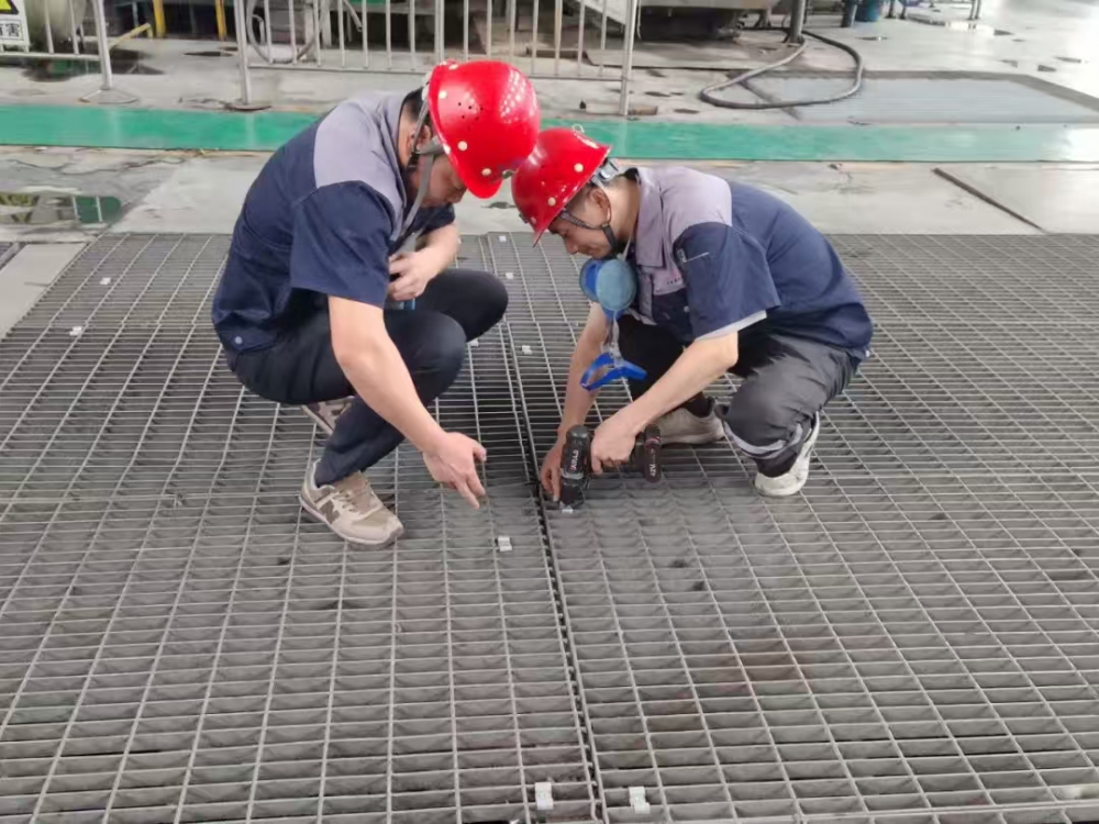 突出問(wèn)題精準(zhǔn)治理。一選廠已生產(chǎn)運(yùn)行多年,濃密車(chē)間人行通道地板腐蝕嚴(yán)重,數(shù)次進(jìn)行修修補(bǔ)補(bǔ),存在較大安全隱患。為徹底解除隱患,公司利用停機(jī)間隙,籌集資金、人力、物資,對(duì)70米通道的地板、護(hù)欄、橫梁和支柱進(jìn)行全面拆除更換,有效保障了作業(yè)區(qū)域安全;同時(shí),為汲取內(nèi)蒙古“7.23”格柵板脫落事故的教訓(xùn),切實(shí)保障員工及參觀人員的生命安全,公司購(gòu)買(mǎi)8000套固定卡扣,對(duì)兩個(gè)選廠磨浮車(chē)間格柵板進(jìn)行加固處理,并在參觀通道設(shè)立了安全提示牌。