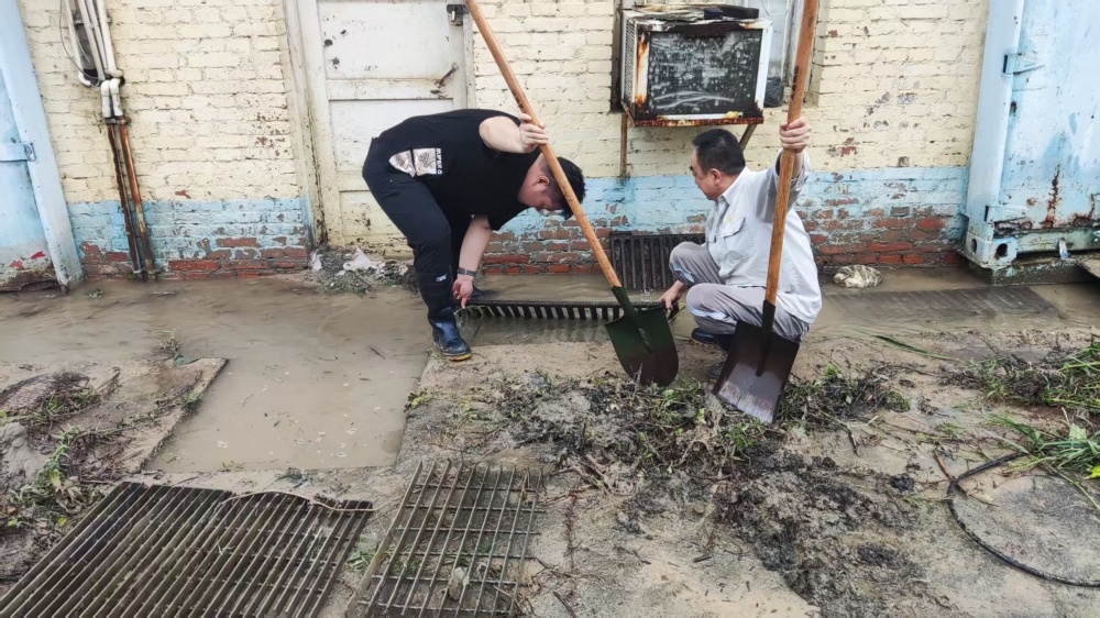 “物資庫房絕不能進(jìn)水!”——這不僅是堅(jiān)定的指令,更是機(jī)動能源部全體人員共同的信念。在暴雨和泥濘中,他們手持鐵鍬,俯身清理排水格柵,徒手掏挖淤積雜物,半蹲調(diào)整工具角度,一鏟一鏟將堵塞物歸攏清運(yùn)。雨水與汗水交織,浸透工裝,污泥遍身,卻無人退縮。這支隊(duì)伍中不乏年長的老同志,他們連續(xù)數(shù)小時奮戰(zhàn)在積水最深、任務(wù)最重的地段,以實(shí)際行動詮釋了能源鐵軍的責(zé)任與擔(dān)當(dāng)。